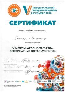 - 2021 г. - Модератор секции «офтальмология» на V Всебелорусском конгрессе по болезням мелких домашних животных